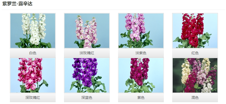 淡粉紅色;乳黃色;深玫瑰紅;淺玫瑰紅;紫色;紫羅蘭色;白色;混合;