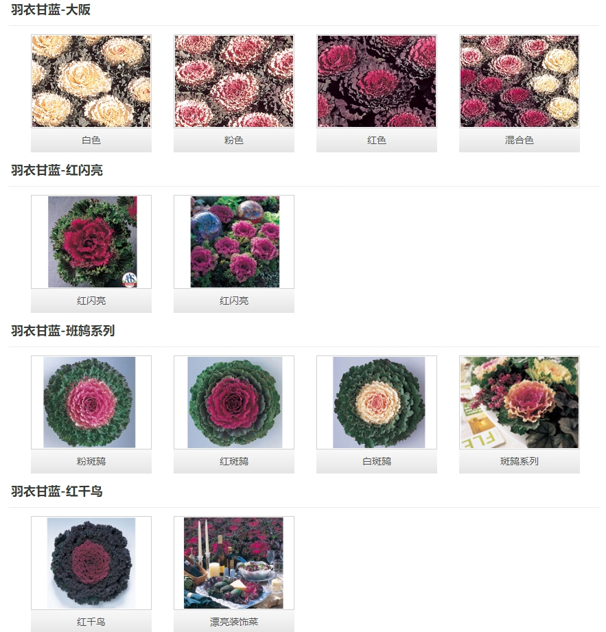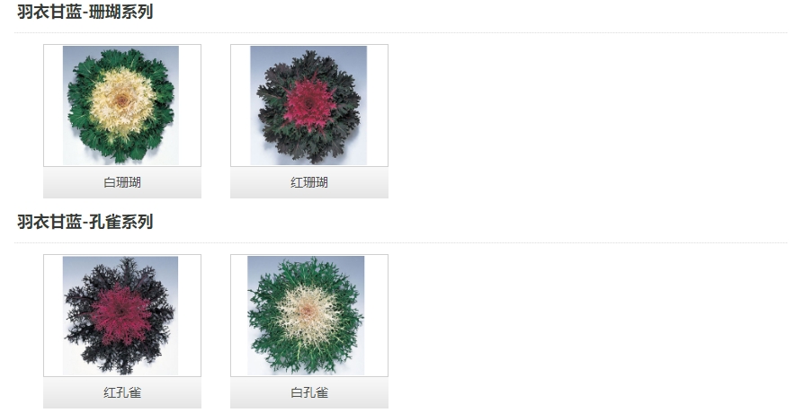 羽葉類型,羽毛狀葉,全裂,生育旺盛,著色稍遲,耐氣候變化,抽薹遲觀賞期長。本系列耐寒性極強(qiáng)。